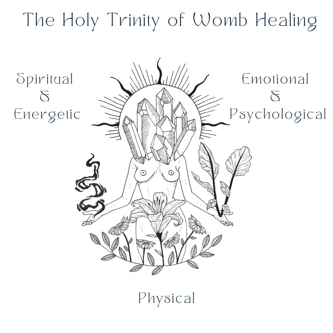 The Holy Trinity Blueprint of Womb Healing starts with the Emotional & Psychological aspects of the human experience, then moves into the Spiritual & Energetic, and completes with the Physical.